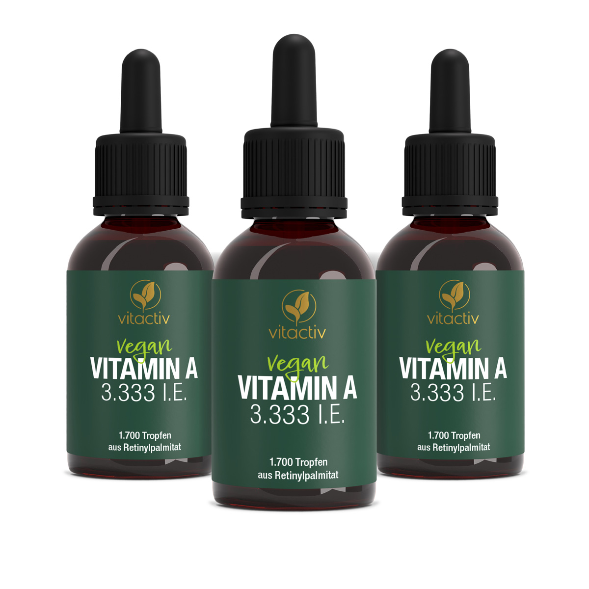 Nelle nostre gocce Vitactiv, la vitamina A è ottenuta dal retinil palmitato vegano. Questa sostanza è particolarmente ben assorbita e utilizzata perché non deve essere prima convertita in vitamina A dall'organismo. La sua elevata biodisponibilità è dovuta anche alla soluzione in olio di cocco MCT. Ciò significa che le gocce di vitamina A possono essere assunte anche indipendentemente dai pasti (grassi), in modo semplice e pratico, in qualsiasi momento.